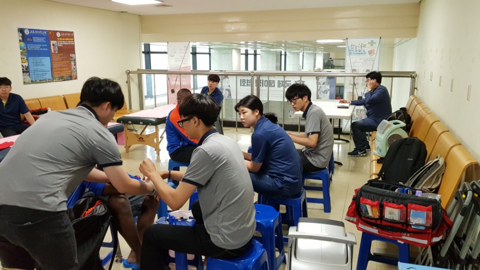 ÀúÈñÆ®·¹ÀÌ³Ê ¼±»ý´Ôµé°ú ÀÚ¿øºÀ»ç ÆÀÀº 2Ãþ¿¡ Å×ÀÌÇÎ ºÎ½º¿Í ¸¶»çÁö ¹èµå, ¼±¼öµéÀÌ ÀÚÀ¯·Ó°Ô ÀÌ¿ëÇÒ ¼ö ÀÖ°Ô Å×ÀÌÇΰú ¸¶»çÁö ºÀ»ç¸¦ ½Ç½Ã ÇÏ¿´½À´Ï´Ù. »óÇØ´ë¿Ü°æ¹«´ëÇÐ Çлýµéµµ ¿Á¤À» ´ÙÇØ ½Ç½À¿¡ ¿À» ¿Ã·È½À´Ï´Ù.