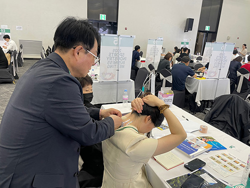 ÇöÀå¿¡¼´Â ±¹³» ½ºÆ÷Ã÷ ±â¾÷µé°ú ÇØ¿Ü ¹ÙÀ̾îµéÀÌ Âü¿©ÇÏ¿© Á¦Ç° Àü½Ã¿Í 1:1 ¼öÃâ »ó´ãÀÌ È°¹ßÈ÷ ÀÌ·ç¾îÁ³½À´Ï´Ù.